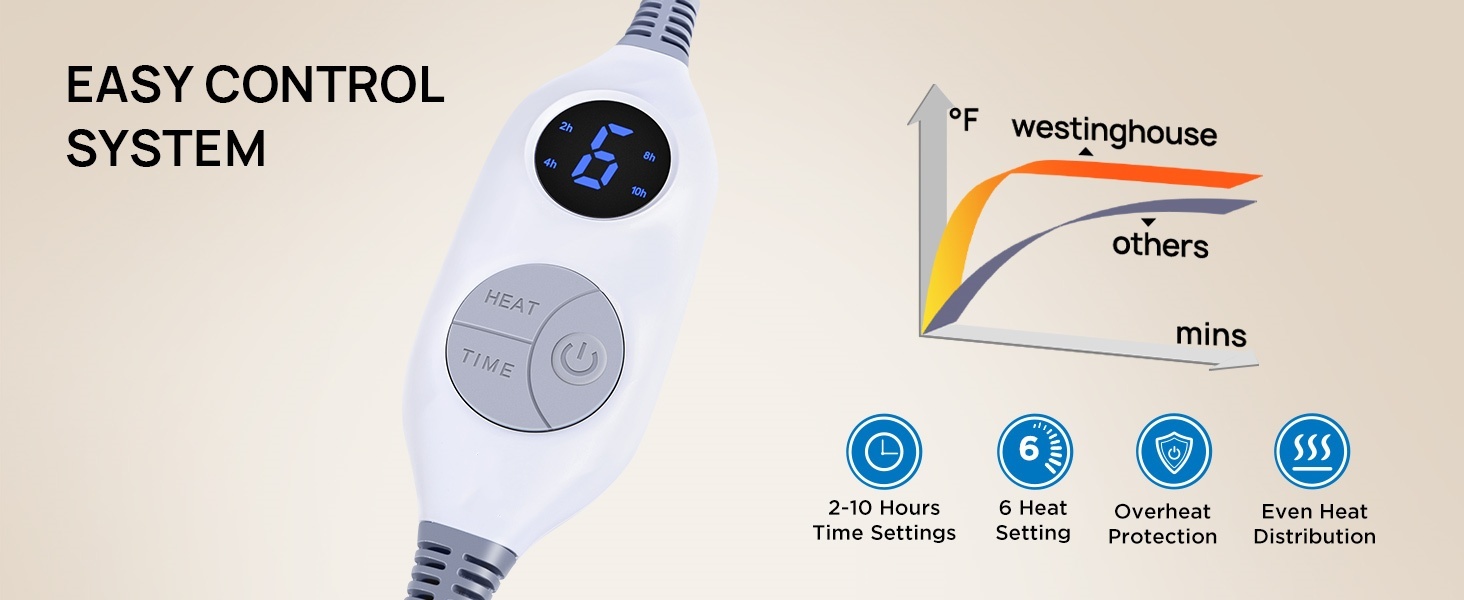 ETL and FCC Certified - 6 Heating levels for different people needs. 2-10 Hours time setting, overheat protection ensure your safety during normal use. Please read the instructions carefully before use to avoid local overheating caused by improper use