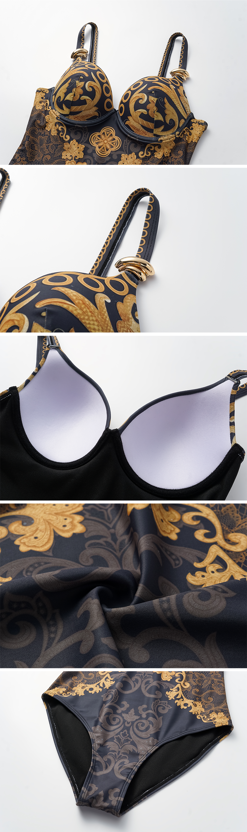 Sling Gold Embroidery Decor One Piece Swimsuit and Skirt